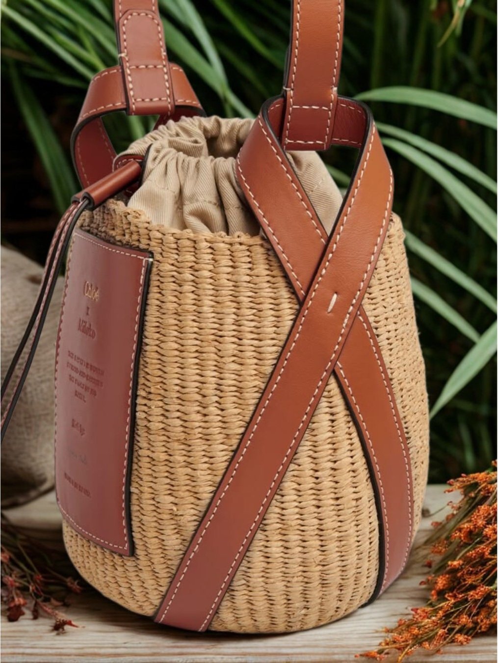 - Design: Contemporary bucket silhouette with a structured round base and adjustable cross-leather straps for both strength and aesthetics.