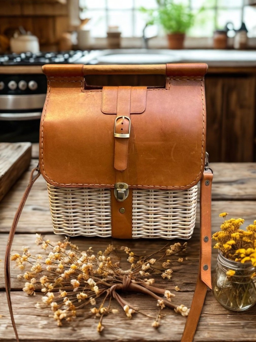The Woodland Wanderer Crossbody is more than a bag — it’s a statement piece that bridges rustic charm with modern sophistication. Its structured leather flap and handcrafted rattan body offer both durability and style, while the dual carrying options (handle or crossbody strap) provide versatility for every occasion. Whether you’re exploring the city, heading to brunch, or strolling through artisan markets, this bag elevates every outfit with natural elegance.